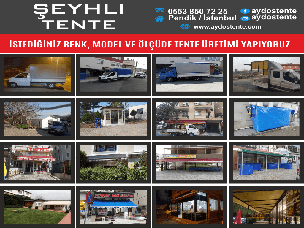 Nisan 1, 2020Şeyhli TenteŞEYHLİ TENTECİ ”Aydos Tente & Branda Sistemleri ” olarak Şeyhli Mahallemizde; Sabit Tente, Körüklü Tente, Karpuz Tente, Şeffaf Tente, Mafsallı Tente, Pergola Tente, Kamyonet Tenteleri, Forklift Tenteleri, Özel Üretim Tente & […]